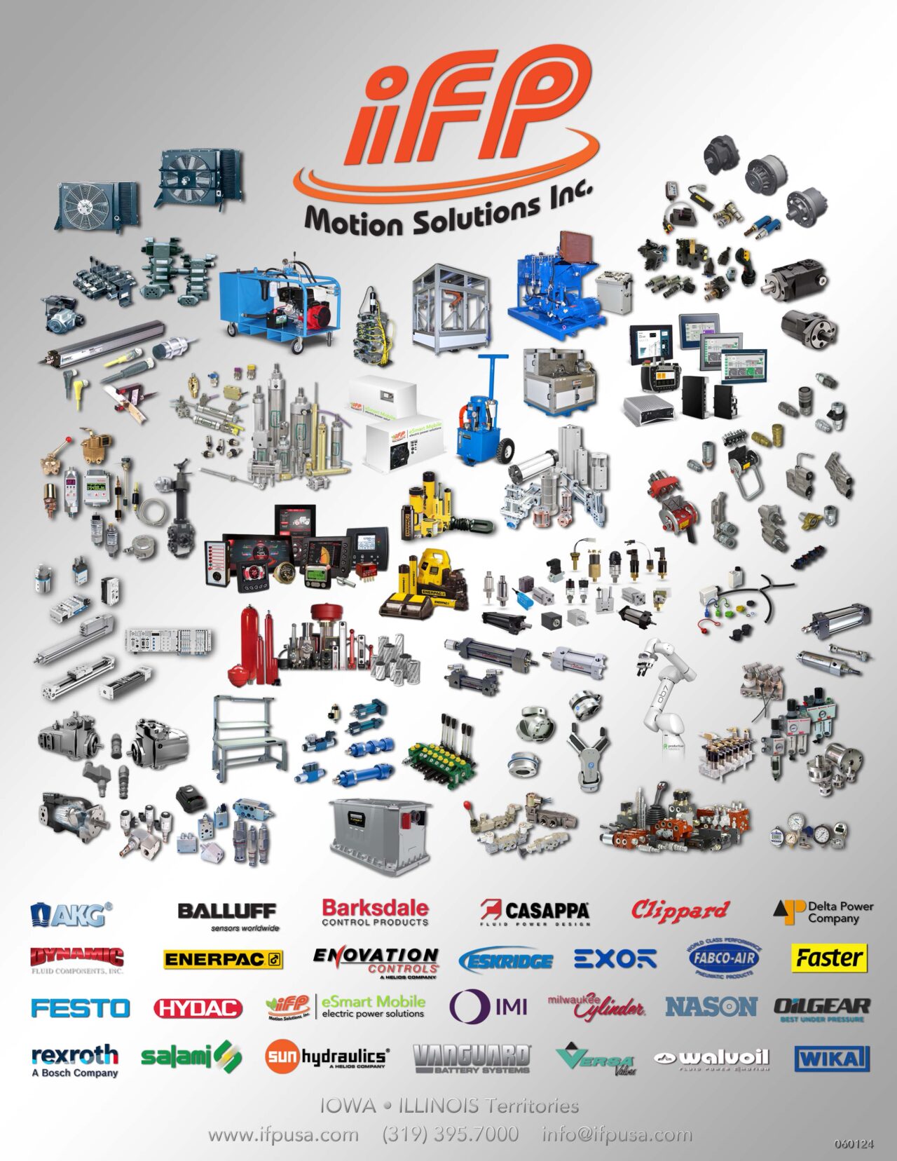 IFP Line Cards TECHNOLOGY PARTNERSIFP Motion Solutions Inc. represents the world’s leading suppliers of hydraulic, pneumatic, automation, electrical, and mechanical technologies for the industrial and mobile markets. Our combined product lines consist of over 100 manufacturers that are fluid power technology leaders.SOLUTIONSIFP Motions Solutions Inc. is both a motion control product distributor and systems manufacturer. We provide customers with many value added services. Our experienced team of engineers and technicians have many years of experience and are knowledgable of the products or systems that we sell.CONTACT USsales@ifpusa.com or call 800-333-7004 IFP Motion Solutions Inc. Iowa